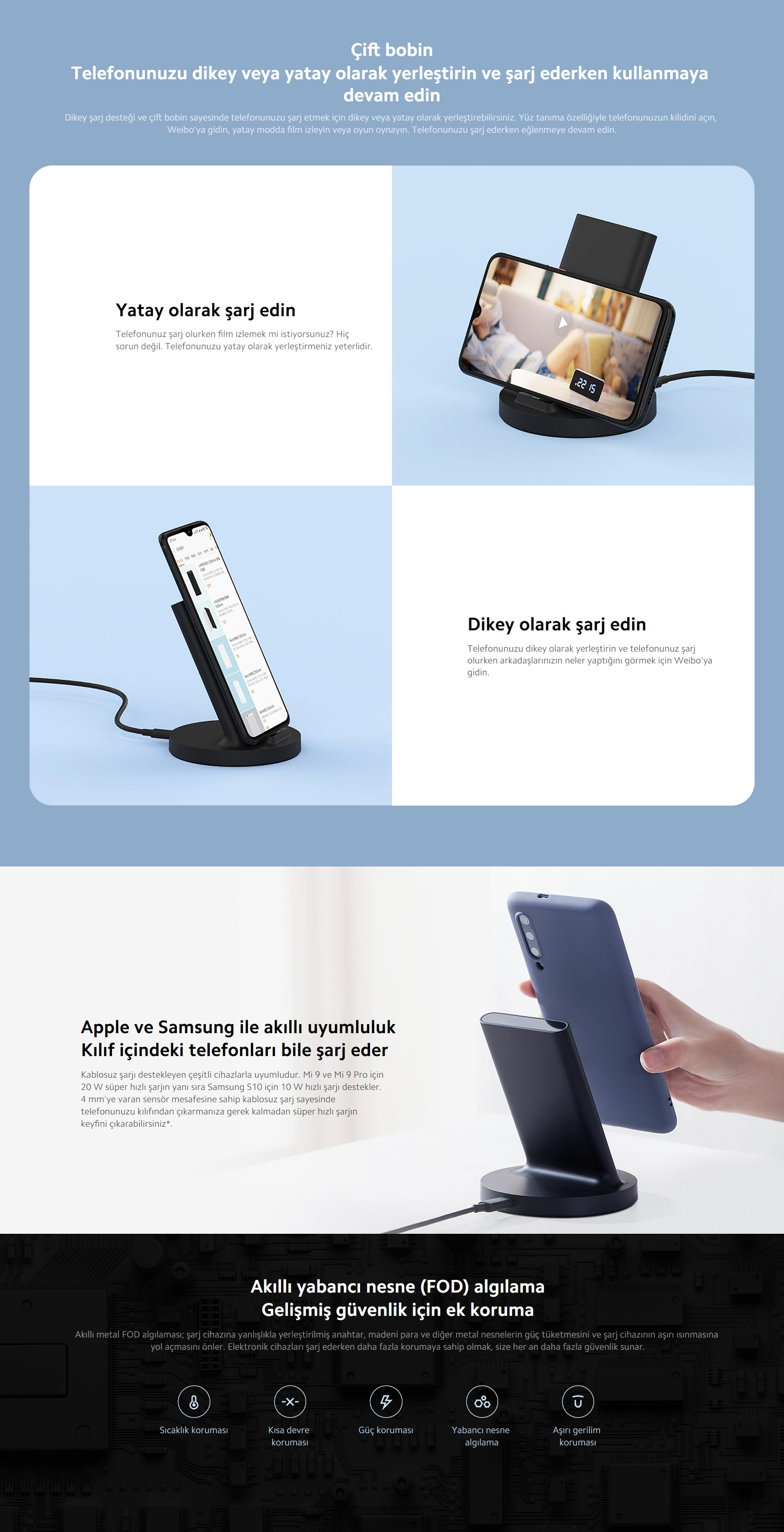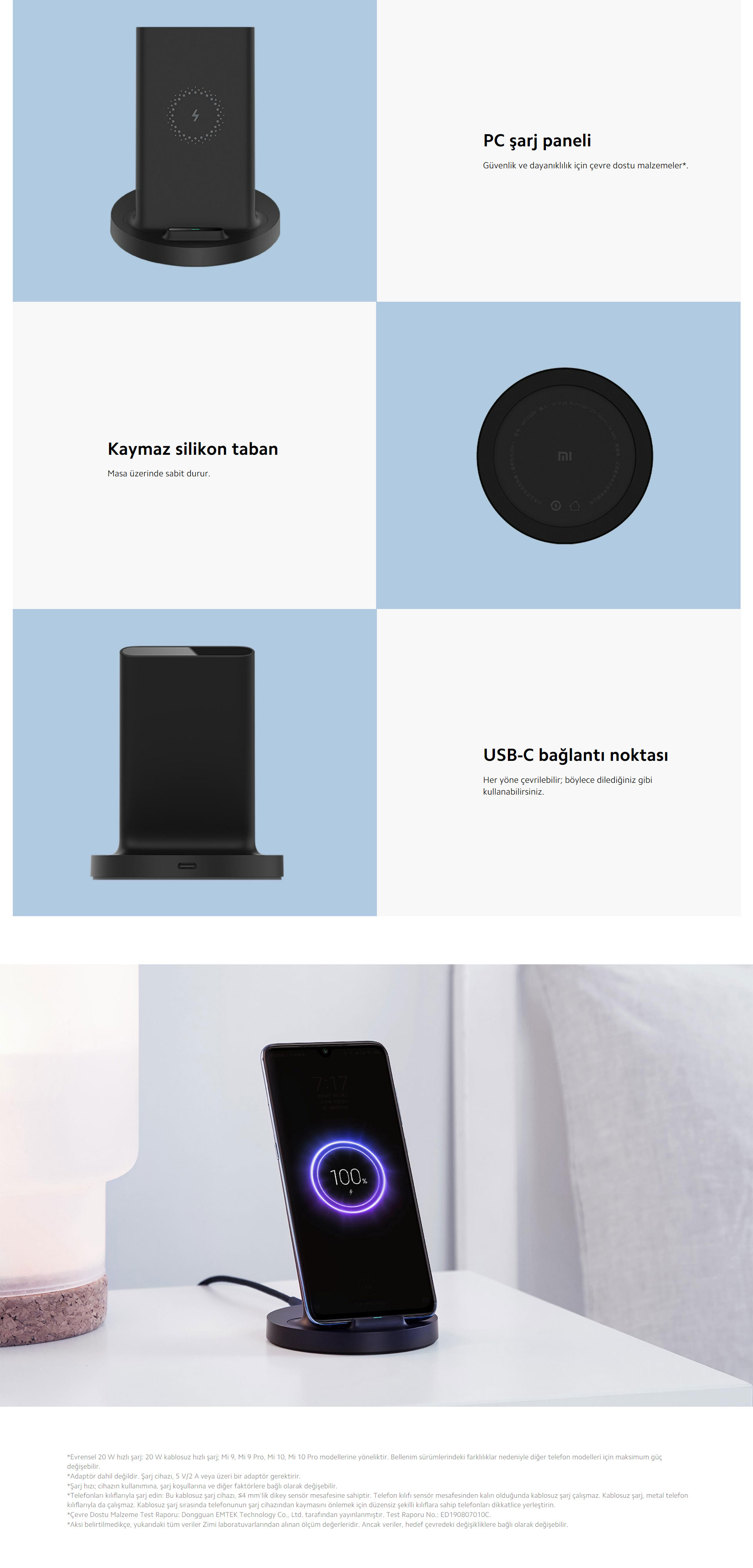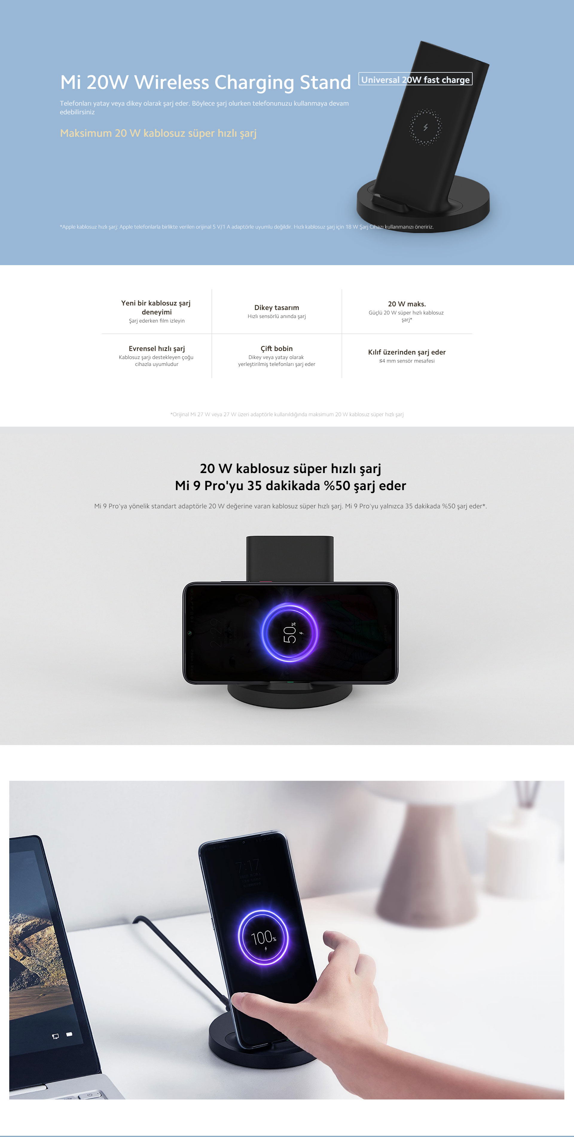Xiaomi Mi Kablosuz Şarj Standı 20W - Kablosuz Şarj Cihazı